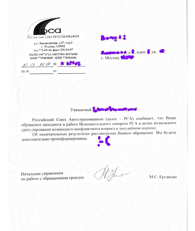 Добрейший, ответ РСА меня не устраивает по следующим причинам:
